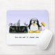 Funny mousepad. Do you like Daylight Saving Time? This Chibi Tux Penguin smashes clock and says You can set it ahead now! Digital clock has smoke rising from it and displays HELP.