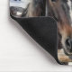 Mousepad with an illustration of two horses on a snowy winter ranch with a full moon in back of them standing behind an old rustic fence.