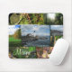 Représentation d'un collage des images du Maine avec le phare léger principal célèbre de Portland au centre. Les images d'une certaine surface boisée, mousse ont couvert des roches, des arbres, le feuille et la nouvelle croissance au sol dans les bois.