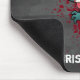 Un tapis de souris avec un cool qui a l'air zombie, portant des vêtements déchirés et en lambeaux avec les bras tendus à la recherche de cerveaux. Une plaque de peinture qui ressemble à une plaque de sang dans l'arrière - plan derrière le zombie. Placez-vous sur un arrière - plan de style grunge noir au charbon de bois avec des rayures fanées. Personnalisez avec un nom.
