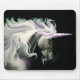 Profil d'une licorne blanche avec mauve dans la crinière sur fond de noir