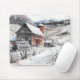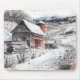 Chez la grand-mère, on va... Une scène typique de la grange d'hiver de l'état de New York, avec la verdure de Noël.