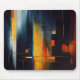A striking modern abstract painting inspired by city lights and vertical architecture. Layers of deep navy, glowing gold, and fiery orange blend into geometric shapes and expressive brush textures, creating a sophisticated urban atmosphere. Perfect for wall art, contemporary home decor, office spaces, and accessories for anyone who loves bold, architectural abstraction and dramatic color contrasts.