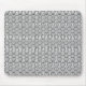 Ce pavé de souris a un design Art Déco de lignes courbes noires en forme de triangle sur un champ de blanc répété à travers le design.