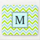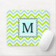 Tapis De Souris Vert et monogramme bleu de coutume de Chevron