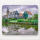 Traditional wooden fishing houses, canal and swan in Marken, Netherlands. View of canal, bridge and traditional fishing houses in waterland village. Traditional Holland symbols.