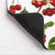 Souris Pad dans un tirage épars de cerises et de feuilles adaptés à partir d'imprimés botaniques vintages - Cerises rouges profondes et feuilles verts sur un arrière - plan blanc