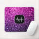 Personnalisez le pavé de souris brillant avec votre initiale et votre nom. De belles parties scintillant brillantes scintillantes roses et violettes brillent. Photo de rose et violet pétille pas de parties scintillant réelle!