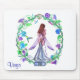 Dessin original en crayon de couleur du signe astrologique zodiaque Virgo, représenté par une belle fée entourée de la fleur de ce signe, la Gloire du Matin dessinée dans la couleur de Virgo bleu marine et l'élément du signe de la Terre.