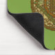 Ce mandala sur le thème de la Virgo présente une pierre péridote entourée du symbole du signe, de la constellation et du symbole alchimique de la Terre parmi les fibres et les tissages.