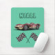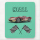 Une voiture de course sportive avec une toile de fond verte et à damiers drapeaux de course en dessous et en haut d'une zone où vous pouvez personnaliser pour en faire votre propre. Vibes de voiture rapide de garçons.