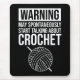 Warning - May Spontaneously Start Talking About Crochet. This funny crocheting lover accessory is a great idea for the crocheter in your life. Perfect for women, men, boys, girls, teens & kids who love to crochet & craft, and love yarn! If crocheting is your hobby, you're a yarn lover and you love crafting with a crochet hook and balls of yarn, then this crocheter design is for you! Includes a graphic of a crochet hook with a ball of yarn.