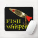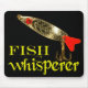 Funny fishing mousepad for all fishermen and fisherwomen. Fish Whisperer in text with a full color fishing lure near the top.
