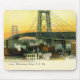Une reproduction d'une carte postale vintage montre le pont de Williamsburg, un pont suspendu à New York City à travers l'East River reliant le côté est inférieur de Manhattan à la rue de Delancey au voisinage de Williamsburg de Brooklyn.