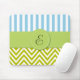 Tapis De Souris Zigzag vert, Chevron, Bleu, Stripes, Monogramme