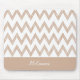 Un mousepad bronzage et blanc à la mode de motif de chevron avec les chevrons brun clair colorés tirés par la main girly de crayon. Personnalisez cette conception brun clair moderne et élégante de zigzag en ajoutant votre nom.