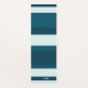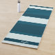 Three-color design with asymmetric stripes. Clean lines in three colors for your yoga mat. Add your name or a quote at the bottom. This variant is the sea blue scheme in Prussian blue, midnight green and azureish white.