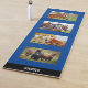 Bleu et noir réversible Yoga Mat. Front a 4 photos de chevaux avec nom ou texte en bas et le dos est pour votre nom ou texte personnalisé.