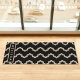 Destei's modern, minimal design in black background with bold beige wavy lines creating a striking yet simple pattern. The flowing pattern adds subtle movement while keeping the overall composition clean and uncluttered.