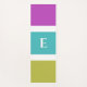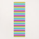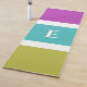 Un tapis de yoga design avec un design rayé moderne en rose, vert, bleu et blanc. Le côté supérieur a de larges bandes, et le côté arrière des bandes étroites. Personnalisez avec votre initiale, qui apparaîtra au centre du design.