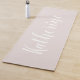 Tapis de yoga personnalisé avec nom de calligraphie personnalisée sur arrière - plan rose poussiéreux.