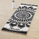 Faites votre pratique du yoga sur cette belle spirale points et fleurs mandala tapis de yoga. Inspiré par mehndi henna body art. Blanc sur arrière - plan noir. Personnalisez avec votre nom ou un autre texte, ou supprimez le texte comme vous le souhaitez. Autres couleurs disponibles.