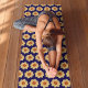 Tapis De Yoga Dahlia jaune motif floral sur bleu