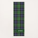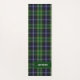 Tapis de yoga de plaid fait dans le motif écossais de tartan de MacKellar de jaune, bleu et blanc de clan de vert. Un ruban vert, à l'extrémité inférieure du tapis, a le texte blanc fait sur commande prêt à personnaliser.