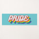 Ce dessin présente le mot fierté dans une police colorée style arc-en-ciel des années 70.
