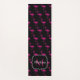 Personnalisez avec votre initiale et votre nom. Détendez-vous dans le style avec un tapis de yoga conçu sur mesure pour elle. De belles parties scintillant roses brillantes et girly brillent l'été exotique flamand motif d'oiseau flamand sur blanc. Photo de parties scintillant rose pétillant !