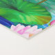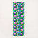 Yoga Mat dans un motif de fleurs de lotus roses en fleurs et de caleçons verts luxuriants flottant sur une surface d'eau bleu richement texturée, dans des tons de rose et vert émeraude