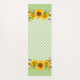 Ce tapis de yoga à fleurs de campagne a de beaux bouquets de tournesol aquarelle sur un arrière - plan en damier vert pastel.