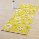 Le tapis de yoga présente des fleurs blanches rétro aux centres roses et verts sur arrière - plan jaune.