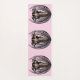 Ce tapis de yoga est rose avec trois femmes de déesse imaginaires avec de longs cheveux noirs debout dans un pod de fleurs noir abstrait.