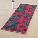 Tapis De Yoga Jardin de Dahlia Rouge/feuilles bleus
