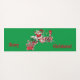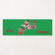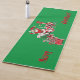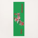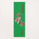 Ce tapis de yoga est vert avec le Père Noël dans un train de bonbons à la menthe poivrée transportant des sucres de canne, des saints, et des lettres à Père Noël avec le texte Joyeux Noël en rouge.