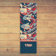 This Japanese inspired yoga mat design includes koi fish in waves of red, navy, and light blue, colored with "election poster" colors. The koi are caught up in a slightly psychedelic wave pattern that repeats at the top and bottom of the printed area. The waves are inspired by the famous Great Wave off Kanagawa artwork by Hokusai with swirling water and seafoam. Your monogram initials are printed at the bottom in a colorblock of navy with cream letters trimmed with red.