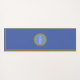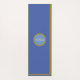 Beau lever de soleil océanique relaxant, tortues de mer, étoiles de mer et perles avec cadre doré Yoga Mat. L'arrière est bleu océan massif avec le mot yoga.
