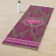 Tapis de yoga avec un lotus sur un arrière - plan d'inspiration asiatique en vert muet et rose fuchsia.