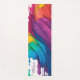 Vibrant Rainbow Paint Drip Yoga Mat avec un nom modèle personnalisé dans une police de calligraphie violette.