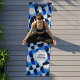 Elevate your daily flow with a touch of retro-modern sophistication. This yoga mat features a dynamic Bauhaus-inspired geometric pattern in a refreshing palette of navy, royal, and sky blue. The clean, semi-circle motifs create a sense of rhythm and balance, perfect for centering your practice.