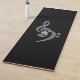 Un tapis de yoga à thème de musique simple noir/blanc classe - treble blanc et clés de basse contre un arrière - plan noir texturé. Amour Musique.