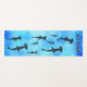 Nager dans l'océan avec le chat de Yoga Sharks. La belle vue d'en bas comme une école de requins nage gracieusement le long de la mer ouverte silhouette d'un soleil au-dessus. Les joies artistiques de la nature nautique, de l'océan et du monde sous-marin bleu. La citation inspirationnelle ajoutée peut être changée ou vous pouvez ajouter votre nom leur à la place. Un tapis merveilleux pour tous ceux qui aiment les animaux et l'océan.