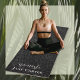 Élégant tapis de yoga léopard noir avec typographie namaste personnalisable en caractères de script tendance et personnalisé avec votre nom.