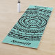 Effectuez votre entraînement quotidien sur ce magnifique tapis de yoga design mandala circulaire en noir sur arrière - plan turquoise clair. Inspiré par mehndi henna body art. Personnalisez le texte ou retirez comme souhaité. Autres couleurs disponibles.
