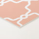 Destei's original white trellis pattern on a peach pink background color. At the bottom, a slim muted olive green panel with a white border adds contrast and has a personalizable name text. This design is a simple and lovely way to bring color and pattern into your practice space.