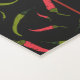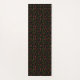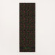 Tapis de yoga noir imprimé à l'avant et au dos avec un motif tiré à la main de piments rouges et verts, avec une bande modifiable à travers le fond pour ajouter votre propre nom ou message