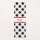 Personnalisez votre tapis de yoga, avec votre nom (ou tout autre texte). Style moderne avec un plaid minimaliste noir & blanc. Le texte personnalisé est rouge pourpre.