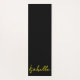Yoga Mat avec six coeurs aux couleurs du drapeau arc-en-ciel PRIDE / LGBTQ+ avec différentes textures de tissu avec des points de suture le long de la bordure supérieure et inférieure. Votre nom en jaune vif (ou une autre couleur de votre choix) sur un arrière - plan noir solide.