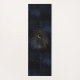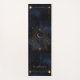 Design graphique astral minimaliste Yoga Mat avec effet de fausse parties scintillant or levant soleil et lune sur les palmiers tropicaux, le tout sur un élégant arrière - plan bleu marine cosmique. Taupe stylish police typographie nom monogramme peut être facilement personnalisé. Laissez-vous inspirer par l'univers tout en vous relaxant et en méditant sur ce magnifique tapis.